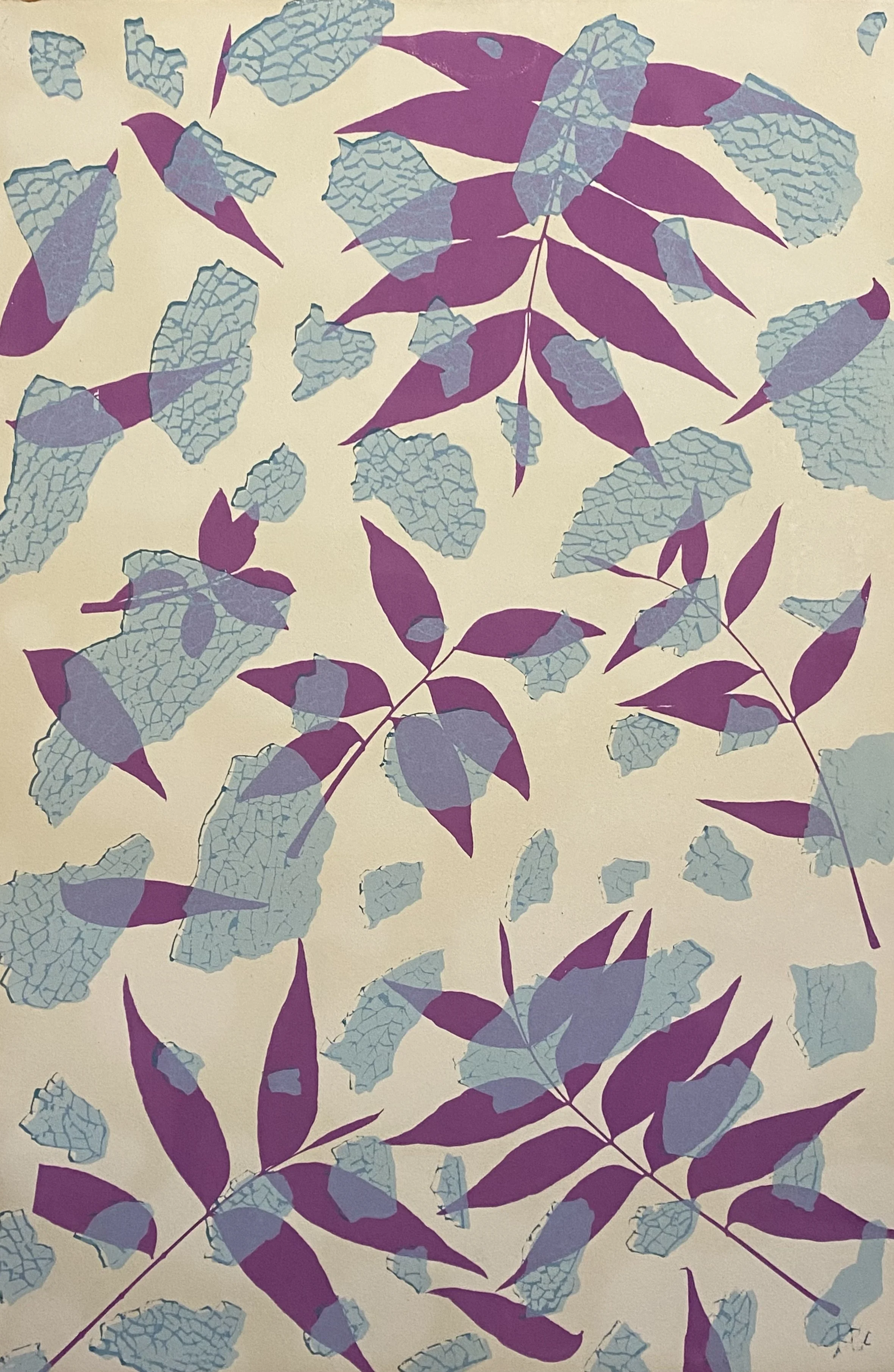 2025, 3 color screen print, edition of 1 on lavender dyed BFK paper, 15”x22.5”