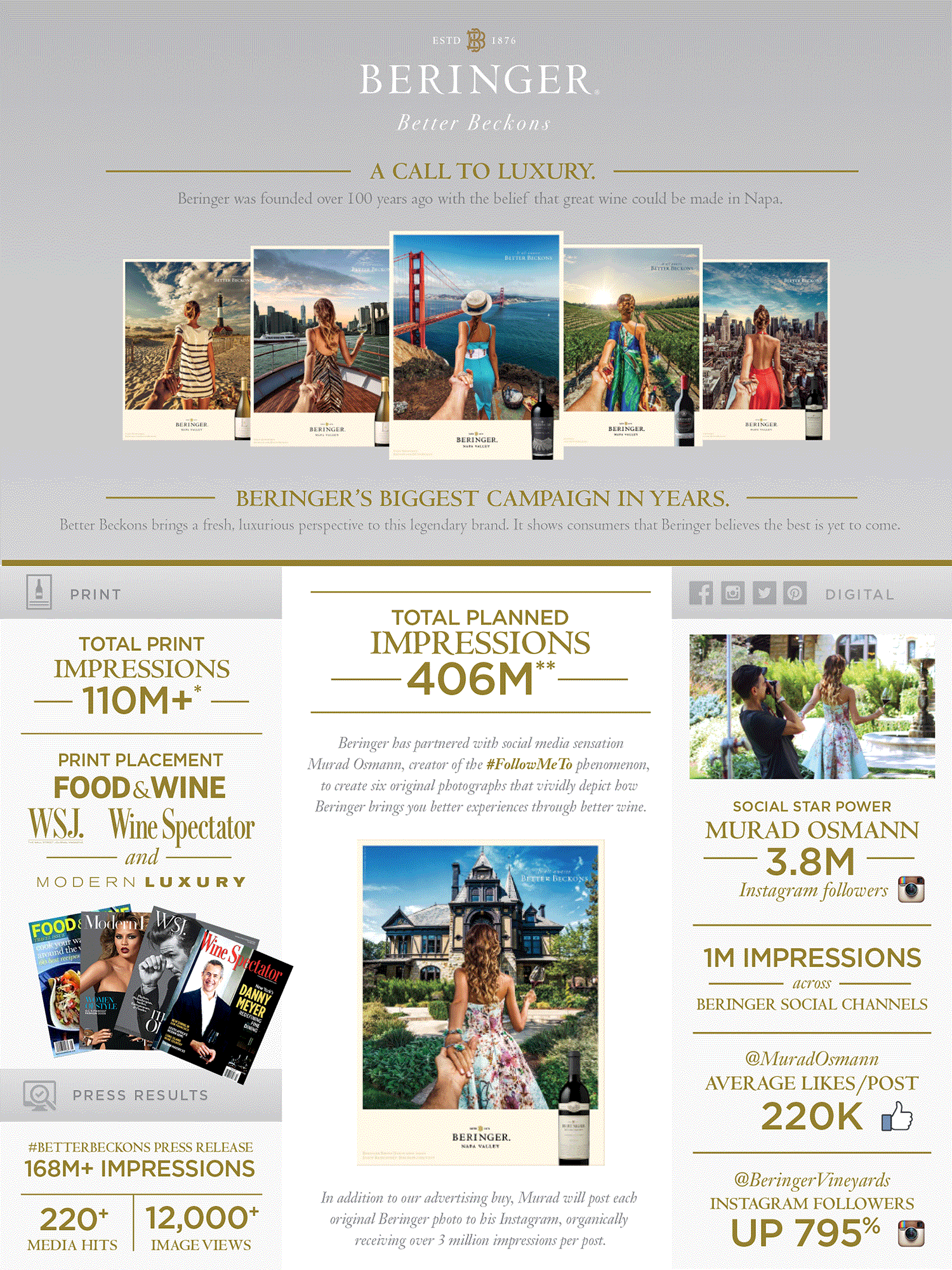 In addition to an advertising buy, Murad also posted each original Beringer photo to his Instagram account, organically receiving over 3 million impressions per post.